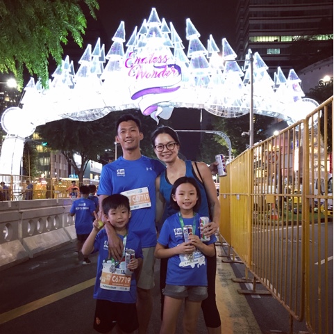 When the bell went off, the kids all DASHED! K really surprised us as she totally took off! They were so super speedy that I lost K for the first 50m of the race. I was able to catch sight of the husband then traced J in front of him speedily; and at some point we switched roles quickly for me to trail J and him to race after K. Phew, I felt all giddy from the stress of being cramped with the crowds, sticking close to the family and taking off so suddenly. I managed to snap some video of J doing what he does best, hi-fiving people for encouragement/fun; he picked this up from our past experiences at races and he does so love to do it. I think he just loves jazzing it up and passing on the love. What an extrovert.