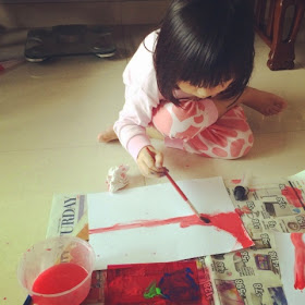We had to lay the paint to dry, and in between K and I cut out the crescent and starts to be glued onto the paint-piece.